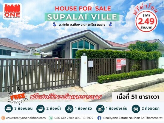 ศุภาลัย วิลล์ นครศรีธรรมราช บ้านเดี่ยวพร้อมอยู่ ฟรีเฟอร์นิเจอร์หลายรายการ