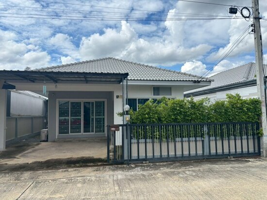 ขายบ้านแฝดชั้นเดียว โครงการบ้านมีสุข สไตล์โมเดิร์น ขนาด 44 ตารางวา วิวธรรมชาติ ทำเลทอง เดินทางสะดวก ห่างถนนอดิเรกสาร เพียง 500 เมตร