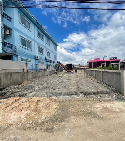 ถมแล้ว เท่าถนนหลัก + ล้อมรั้วเรียบร้อย