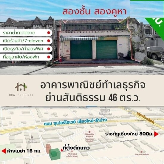 อาคารพาณิชย์ 2 ชั้น 2 คูหา เหมาะสำหรับนักธุรกิจรุ่นใหม่ ในย่านสันติธรรม เนื้อที่ 46 ตรว.