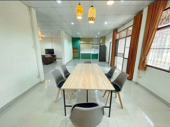 ThaPhra Market 600 meters MRT ThaPhra 500m. 5bed Large luxurious 2-story detached house for rent 92sq.wa. 292sq.m. 1.5km. from Blooming Bud International School 4 bath fully furnished and equipped suitable for living 34,998B-M. Community area from shopping areas on Charansanitwong Road.