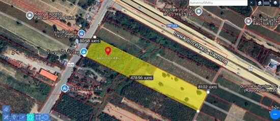ที่ดินผืนใหญ่ทำเลทองติดถนนใหญ่สายเศรษฐกิจ นิคมพัฒนา-ระยอง ผังเมืองสีม่วงลายผสมสีม่วง