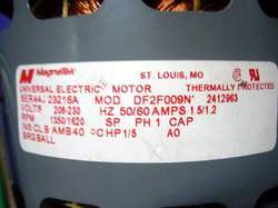 มอเตอร์พัดลมคอยล์ร้อน > มอเตอร์พัดลม MAGNETEK Universal Electric > กำลัง 1/5 แรงม้า > ใช้ไฟ 220 โวลต์ > น้ำหนัก 3.75 กิโลกรัม > ขนาดเส้นผ่าศุนย์กลาง 12.5 ซม. > ขนาดแกน 12 มม. > ขายโล๊ะคลังอะไหล่>