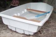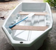 เรือ ขนาดประมาณ 100x240x40 cm ผลิตจากแผ่น abs อย่างหนา 7mm อัดปั้มขึ้นรูป พร้อมไม้พาย1และที่นั่ง สองที่