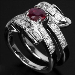 แหวนคู่รักประดับพลอยแท้ทับทิมและซัฟไฟร์สีขาว(2702)