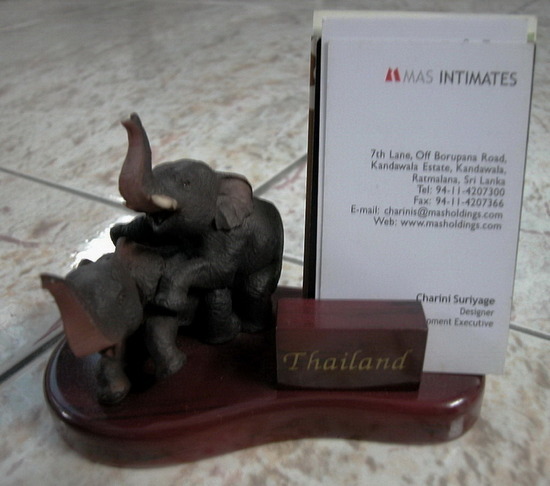 - งานไม้แกะสลักเป็นรูปช้าง 2 ตัว - สำหรับใส่นามบัตร