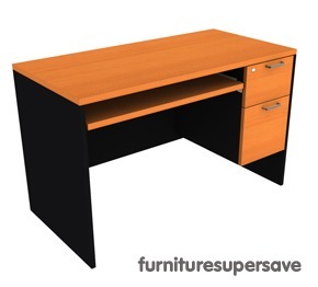 โต๊ะคอมพิวเตอร์ 2 ลิ้นชักขวา เคลือบผิวเมลามีน สีเชอร์รี่/ดำ ขนาด 120(ก)*60(ล)*75(ส) ซม. ราคาพิเศษสุด รับประกันสินค้า 1 ปี