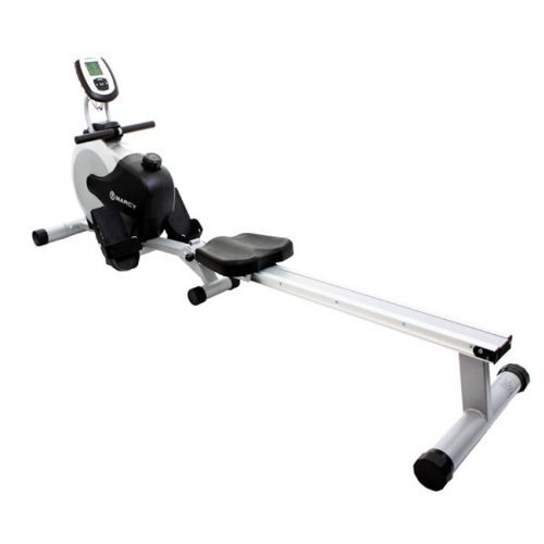 The Marcy RM413 rower is a brand new version of the popular RM403: it has a new flywheel casing design. This rowing machine offers smooth, natural action for comfortable workout of the whole body. There are 8 manually adjustable levels of magnetic resistance to vary the intensity of every session. The LCD monitor with large digits displays time, distance, stroke count, calories and strokes per minute. Folding and equipped with transportation wheels, the Marcy RM413 rower will satisfy every fitness enthusiast who wishes to exercise at home, but not necessarily has enough space for a non-folding machine.