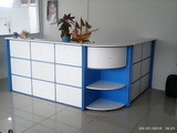 ขายเคาร์เตอร์สีฟ้า-ขาว รูปตัวแอล แผ่นวางด้านบนหนาประมาณ 1 นิ้ว ติดด้วย PVC กันน้ำได้ ประกอบด้วย 3 ชิ้น 1.ด้านหน้า ขนาด 180*60*110 cm ด้านหลังมีที่วางแป้นพิมพ์ 2 จุด ลิ้นชัก 1 ช่อง 2.โค้งเข้ามุม 3.ด้านข้าง ขนาด 130*60*110 cm ด้านหลังมี ลิ้นชัก 2 ช่อง ทั้่งชุดขาย 8500 บาท สนใจติดต่อ 081-251-7396 ปิง