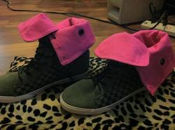 ขายรองเท้า vans หุ้มข้อยาว ลายตาราง ข้างนอกสีเทาดำ ข้างในสีชมพู เชือกสีดำ ไซด์ 8 ของแท้้ ซื้อมาจากใน shop อเมริกา ราคาต่อรองกันได้ สนใจติดต่อเข้ามาขอดูรูปเพิ่มเติมได้ค่ะ