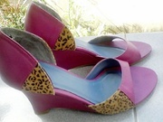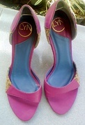 รองเท้ายี่ห้อ Lyn มือสอง สีม่วง-ชมพู่ ส้นสูง 3 นิ้ว เบอร์ 35 ราคา 390 บ. ( ส่งฟรี EMS ) จากราคาเต็ม 1,790 บาท สภาพยังใหม่ 90% มีรอยนิดหน่อยที่พื้นด้านขวา และตรงส้น