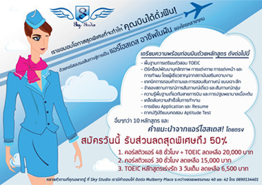 เสริมสร้างความมั่นใจ เรียนเข้าใจง่าย แอร์โฮสเตส อาชีพในฝันของหลายๆคน กับ www.skystudiobkk.com คุณหลิ้น 089-0134401