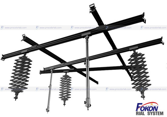 สำหรับพื้นที่กว้างประมาณ 6x4 เมตร ให้ความปลอดภัยมากกว่าการใช้ขาตั้งไฟและ ความสะดวกในการจัดแสงสูงสุด ราง 3x3 เมตร และ 2x5 เมตร สปริงแขวน = 3 ตัว เสาแขวน = 2 ตัว