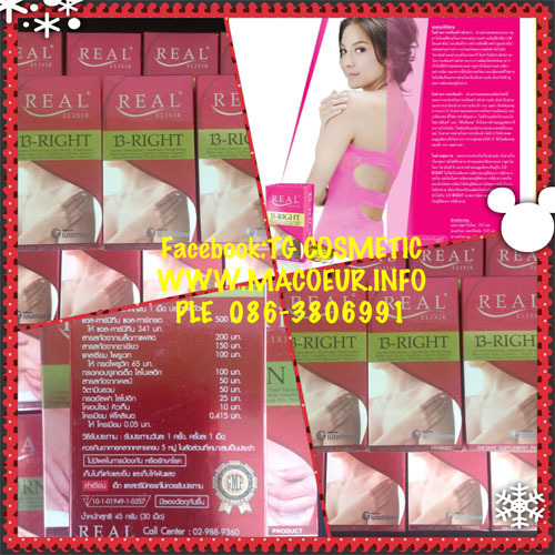 13-RIGHT ผลิตภัณฑ์อาหารเสริมเพื่อเสริมสร้างผิวกระจ่างใส ด้วยสูตรเฉพาะและเป็นแบรนด์เดียวที่มีส่วนผสมของกลูตาไทโอนและอะเซโรล่า เขอร์รี่ในเม็ดเดียวกัน คุณสมบัติพิเศษ ด้านการเสริมสร้างผิวขาว ด้วยส่วนผสมของแอลกลูตาไทโอนที่ช่วยกระตุ้นการสร้างเม็ดสีผิวสีขาว (ฟิโอเมลามิน) และยับยั้งการสร้างเม็ดสีผิวสีคล้ำ (ยูเมลามิน) พร้อมด้วยการทำงานร่วมกันของกรดอัลฟาไฮโปอิค วิตามินซีและอะเซโรลาเชอร์รี่ จึงทำให้มีประสิทธิภาพในการเสริมสร้างผิวขาวมากกว่าผลิตภัณฑ์เสริมสร้างผิวขาวมากกว่าผลิตภัณฑ์ทั่วไปที่มีส่วนผสมของแอลกลูตาไทโอนธรรมดาเพียงอย่างเดียวนอกจากนี้ยังมีสารสกัดจากมะเขือเทศที่ให้สารไลโคพีนที่นอกจากช่วยในเรื่องผิวขาวแล้วยังทำให้ผิวดูสุขภาพดีอมชมพูอีกด้วย ในด้านปกป้องผิว ด้วยส่วนผสมของผิวพรรณที่นอกจากช่วยในการเสริมสร้างผิวขาวแล้วยังคำนึงถึงการปกป้องผิวจากการเกิดผ้า กระ และจุดด่างดำ ซึงเป็นต้นเหตุจากแสง UV ด้วยส่วนผสมของสารสกัดจากเมล็ดองุ่นและเปลือกสน ที่ให้สารสำคัญที่เป็นสารต้านอนุมูลอิสระและละลายไขมันจึงสามารถปกป้องผิวได้ดีช่วยลดอนุมูลอิสระที่เกิดจากการกระตุ้นของรังสี UV ที่เป็นต้นเหตุของ ผ้า กระและจุดด่างดำ ด้านสุขภาพ ช่วยในเรื่องผิวและยังช่วยในเรื่องสุขภาพให้ดีอีกด้วยเนื่องจากมีสารกลูตาไทโอน วิตามินซี และบี ซึ่งผลิตภัณฑ์ อาหารเสริมทั่วไปไม่มี ส่วนประกอบ แอลกลูตาไธโอน 250 มก. อะเซโรลา เขอร์รี่ 500 มก. สารสกัดจากมะเขือเทศ 60 มก. กรดอัลฟาไฮโปอิก 50 มก. แอลซิสเตอิน แอลไกลซิน และแอลกลูตามิน 150 มก. วิตามินซี 35 มก. สารสกัดจากเมล็ดองุ่น 30 มก. สารสกัดจากเปลือกสน 30 มก. วิตามินอี 20 มก. ขนาดรับประทาน 1-2 เม็ด เช้าและก่อนนอน อย.เลขที่ 10-1-01949-1-0335 สนใจติดต่อ 086-3806991 ple หรือดูในเว็บ http://www.macoeur.info Facebook TG cosmetic ตอนนี้สามารถเข้าดูที่ facebook และเว็บนี้ค่ะ http://macoeur.tarad.com/?lang=th