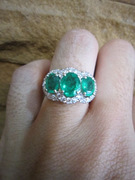 แหวนมรกตโคลัมเบีย 3 เม็ดล้อมเพชร