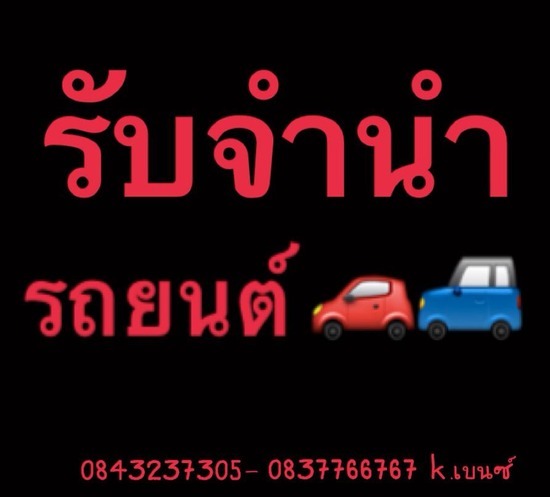 ต้องการจำนำรถยนต์อย่างปลอดภัยโทรมาสอบถามรายละเอียดได้ค่ะเรายินดีให้บริการค่ะ 24 ชม.ติดไฟแนนซ์ , ไม่มีเล่ม, รถป้ายแดง , รถยนต์ทุกประเภท ,ทุกกรณี,รถตู้,รถกะบะ,รถเก๋ง ได้หมด ค้างค้างวดก็โทรมาปรึกษากันได้ คุณเบนซ์ 0837766767-0843237305