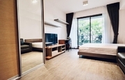 ห้องสตูดิโอขนาดใหญ่ 33ตร.ม. ชั้น7 ระเบียงกว้างพิเศษ ติดสวนส่วนตัว ระเบียงทิศเหนือ ห้องมีเฟอร์นิเจอร์ ตกแต่งครบ