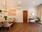 ที่มีสถาปัตยกรรม ทรงยุโรป ที่มาพร้อมกับเพดาน สูง 20 เมตร ให้ความรู้สึกเข้ามาแล้วไม่อึดอัด ปูพื้นกระเบื้อง ลายไม้ ลายก้างปลา การตกแต่งภายใน โทนสีขาว และเบส และใช้ ลายสีธรรมชาติ ของไม้สัก ทำให้บ้านดูอบอุ่น บ้านหลังนี้มี