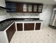 มีเฟอร์นิเจอร์บิวท์อิน ชุดเคาเตอร์ครัวพร้อมซิงค์ ชั้นล่างเตาแก็ส 2 หัว และฮู้ดดูดควัน