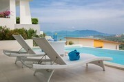 Floor to ceiling glass doors from the living room open onto the pool deck. From the pool deck stairs lead down to the 3rd en-suite bedroom with its own private balcony (or could be used as a gym or office).