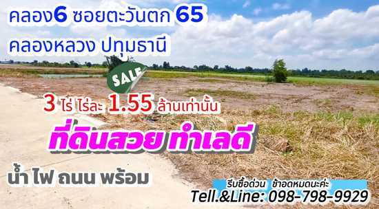 #ที่ดินคลอง6 (#ซอยคลองหกตะวันตก65) อ.คลองหลวง ปทุมธานี 3 ไร่ ไร่ละ 1.55 ล้านบาท