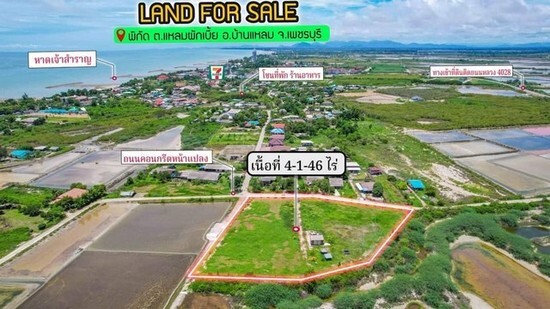 ขายที่ดิน ใกล้ทะเล หาดเจ้าสำราญ อำเภอบ้านแหลม จังหวัดเพชรบุรี 2 แปลงติดกัน รวม4 ไร่ 1 งาน 46 ตารางวา