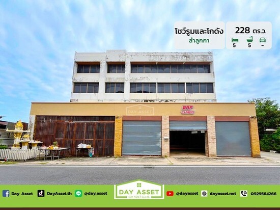 ขาย โกดัง-โชว์รูม 3 ชั้นครึ่ง (ลำลูกกา) ใกล้รถไฟฟ้าสายสีเขียว สถานีคูคตและสถานีแยก คปอ. เนื้อที่ 228 ตร.ว. ขายเพียง 19,500,000 ล้านบาท