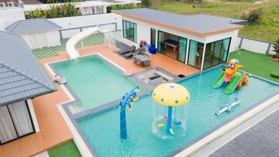- สระว่ายน้ำ ขนาดใหญ่ 4*9 เมตร มาพร้อมสวนน้ำเด็ก ขนาด 4*15 เมตร