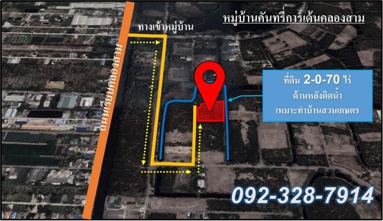 ขายด่วน ที่ดินริมน้ำถมแล้ว คลอง 3 คลองหลวง ปทุมธานี