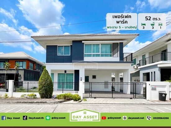 ขายบ้านเดี่ยว 2 ชั้น หมู่บ้าน : เพอร์เฟค พาร์ค พระราม 5 – บางใหญ่ : Perfect Park Rama 5 – Bangyai ซอยวัดพระนอน ใกล้รถไฟฟ้าสายสีม่วง เนื้อที่ 52 ตร.ว. ขายเพียง 4,890,000 ล้านบาท