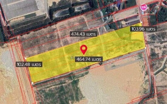 รูปที่ดินสี่เหลี่ยม หน้ากว้างประมาณ 100 เมตร