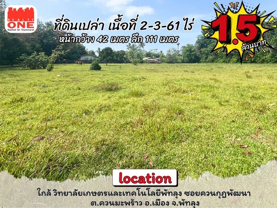 ที่ดินพร้อมสิ่งปลูกสร้าง เนื้อที่ 2-3-61 ไร่ จังหวัดพัทลุง