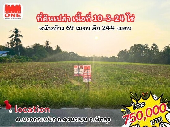 ที่ดินแปลงใหญ่ เนื้อที่ 10-3-24 ไร่ ทำเลดี ราคาสุดคุ้ม ทางเข้าชุมชนคลองเกา ม.2 ต.มะกอกเหนือ อ.ควนขนุน จ.พัทลุง