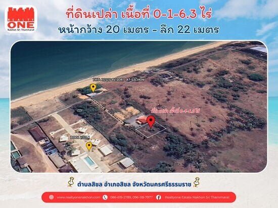 ที่ดินใกล้ทะเล ราคาดีที่สุด ทำเลทอง สิชล - นครศรีธรรมราช ขนาดพื้นที่ 0-1-6.3 ไร่