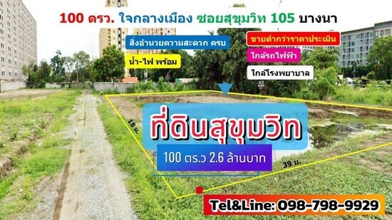 ที่ดินสุขุมวิท105 บางนา กรุงเทพ ใจกลางเมือง 100 ตรว. 2.6 ล้านบาท