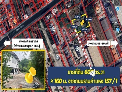 ขายที่ดิน รามคำแหง 157/1 ติดถนนใหญ่เพียง 160 เมตร!