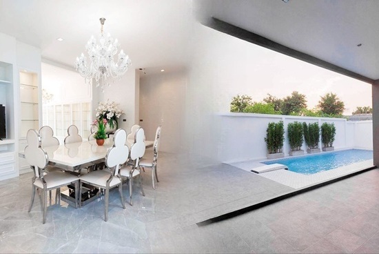 luxury pool villa 3Storeys 5bed 8A/C Adjecent to Amata Spring Country Club for rent Luxury Mansion Rattanakorn Market 2km. Sukprayun good atmosphere 92sq.wa. 450sq.m. 79,999B-M very spacious 6bath 5parking quiet private Sripatum Village Chonburi.