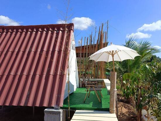 บ้านานมี 2 หลัง ห้องน้ำ 3 ห้อง ศาลากางเต้นท์ 1 หลัง แอร์ 2 ตัว พร้อมเฟอร์ ถังเก็บน้ำ ปั๊มน้ำ มีสิ่งปลูกสร้าง